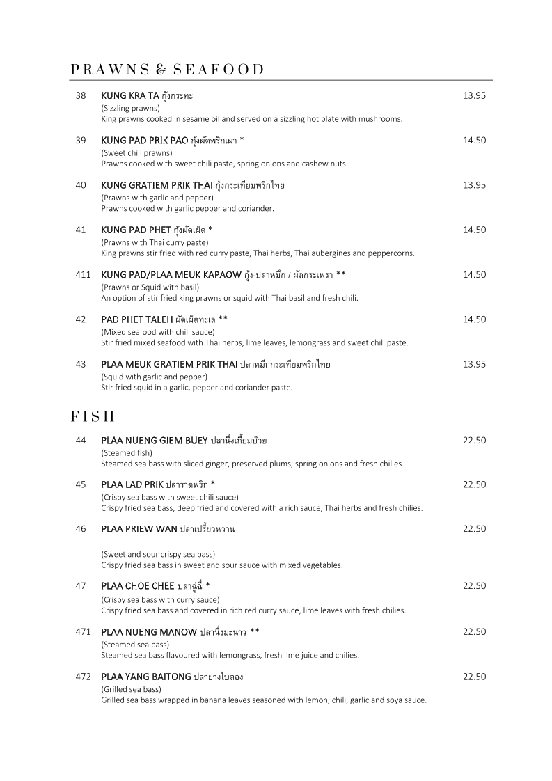 (Pork with Thai curry paste) Stir fried pork with curry paste, Thai herbs, fresh peppercorns and Thai aubergines.